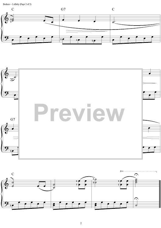 Digital Sheet Music for Lullaby by Johannes Brahms, Richard Bradley scored for Easy Piano; id:292450