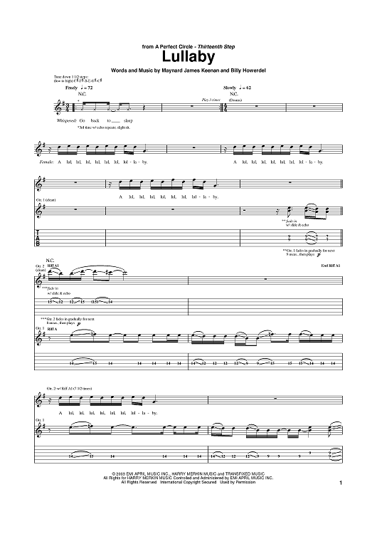 Digital Sheet Music for Lullaby by Maynard James Keenan, Billy Howerdel, A Perfect Circle scored for Guitar Tab; id:380573