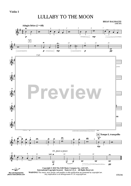 "Lullaby to the Moon - Violin 1" Sheet Music by Brian Balmages