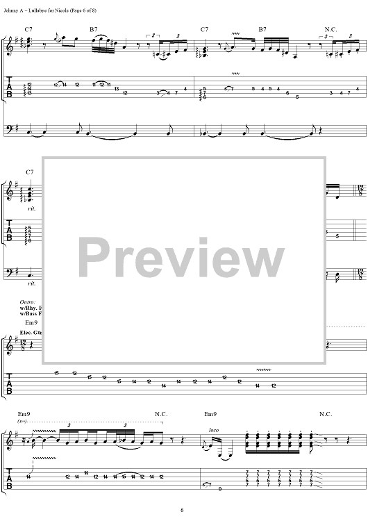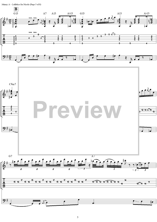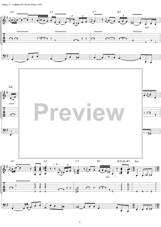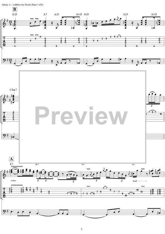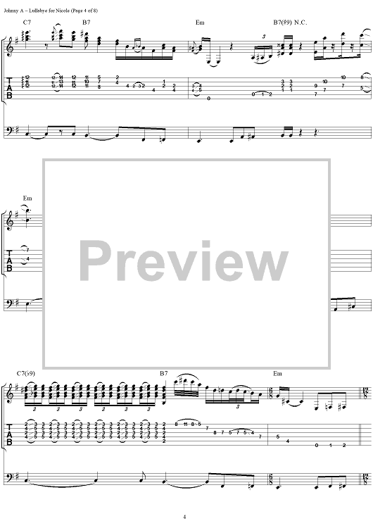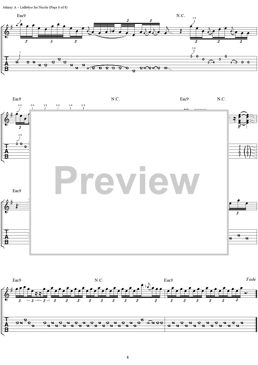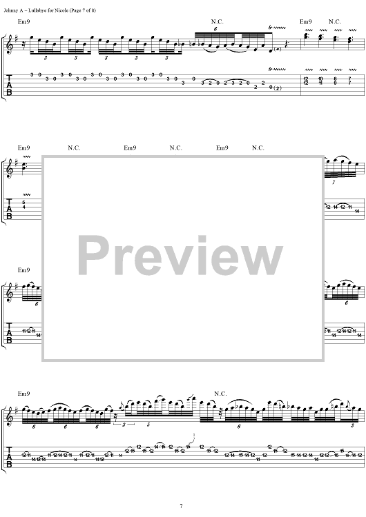 Digital Sheet Music for Lullabye for Nicole by Johnny A. scored for Guitar Tab/Bass; id:289638