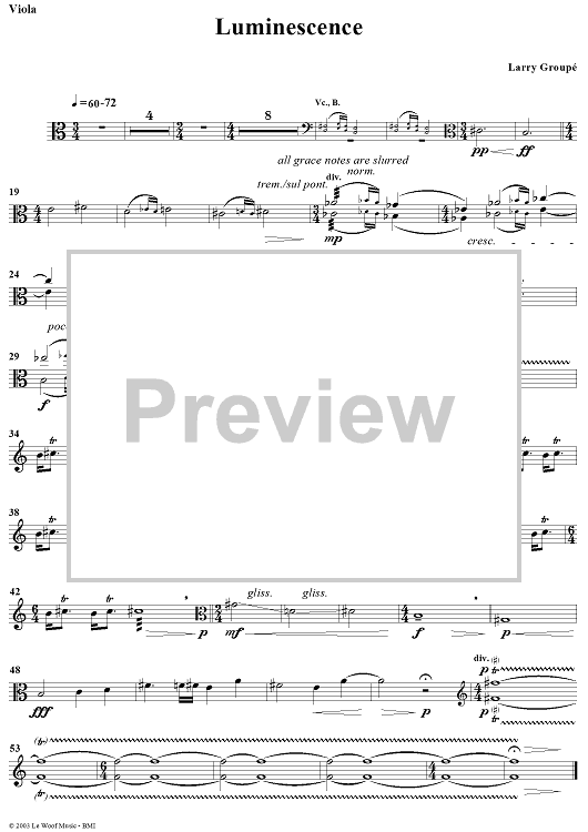 "Luminescence - Viola" Sheet Music by Larry Groupé