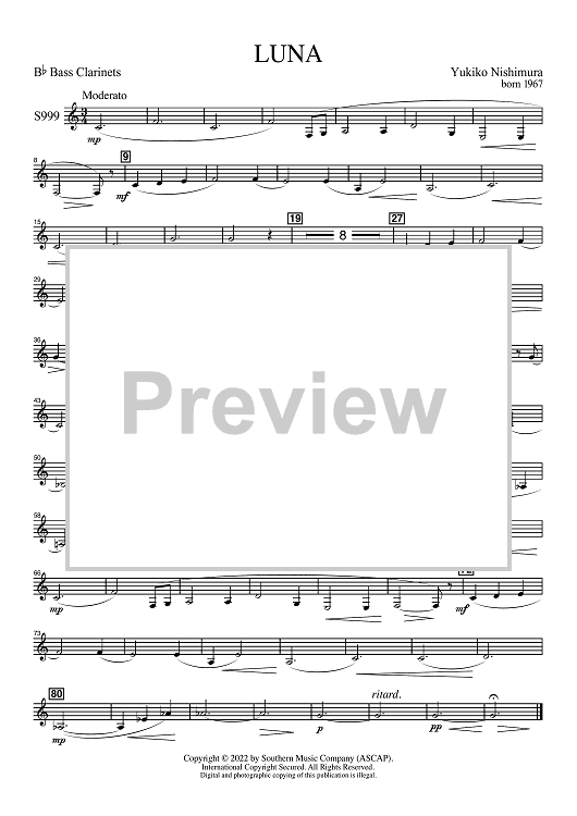 Digital Sheet Music for Luna for Band - Bb Bass Clarinet by Yukiko Nishimura scored for Concert Band; id:503283