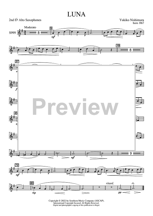 Digital Sheet Music for Luna for Band - Eb Alto Sax 2 by Yukiko Nishimura scored for Concert Band; id:503287