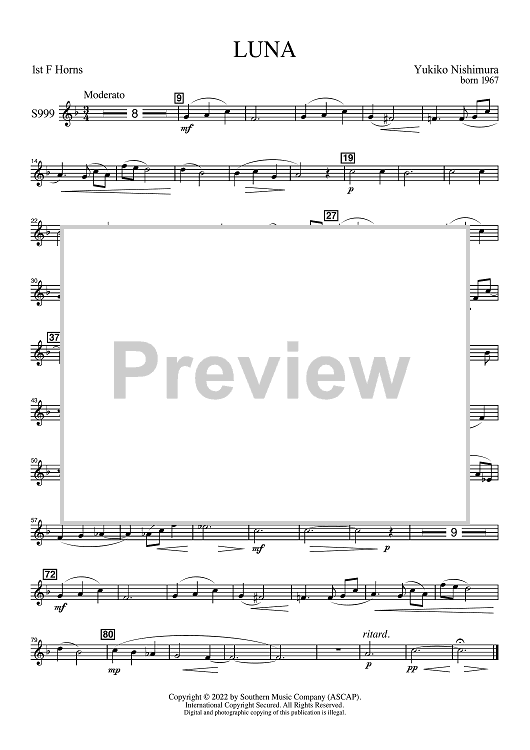 Digital Sheet Music for Luna for Band - F Horn 1 by Yukiko Nishimura scored for Concert Band; id:503292