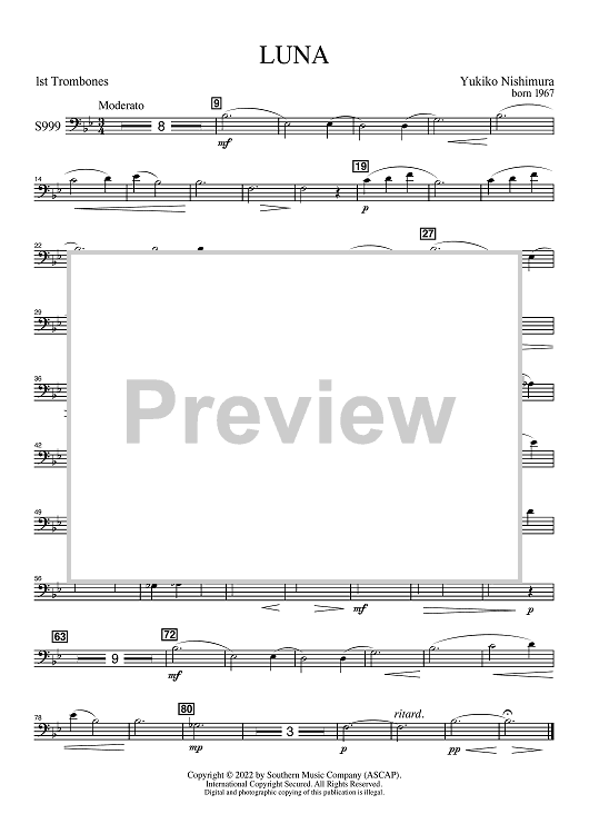 Digital Sheet Music for Luna for Band - Trombone 1 by Yukiko Nishimura scored for Concert Band; id:503294