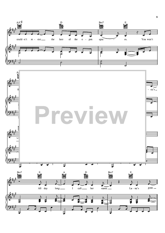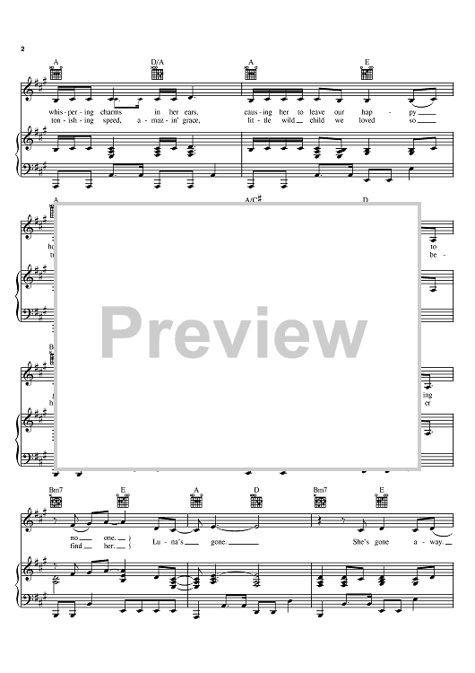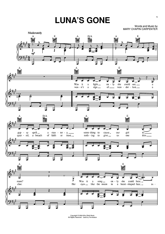 Digital Sheet Music for Luna's Gone by Mary Chapin Carpenter scored for Piano/Vocal/Chords; id:379312
