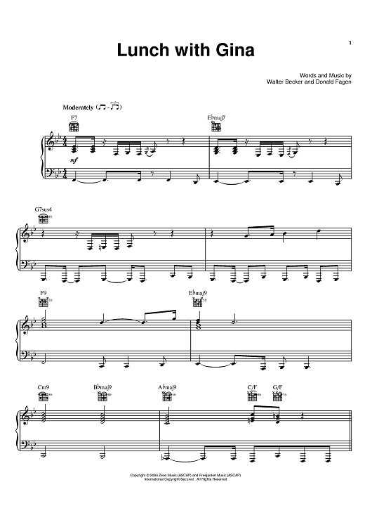 Digital Sheet Music for Lunch With Gina by Steely Dan, Donald Fagen, Walter Becker scored for Piano/Vocal/Chords; id:390683