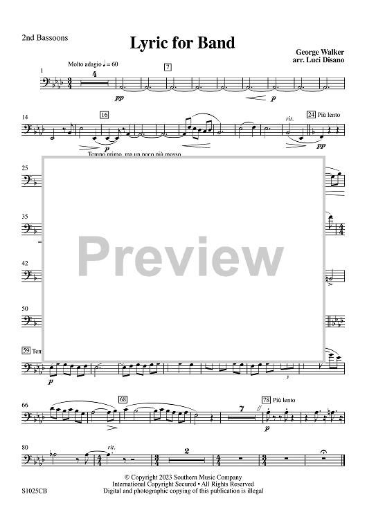 Digital Sheet Music for Lyric for Symphonic Band - Bassoon 2 by George Walker, Luci Disano scored for Concert Band; id:503328