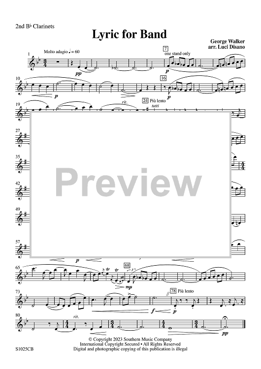 Digital Sheet Music for Lyric for Symphonic Band - Bb Clarinet 2 by George Walker, Luci Disano scored for Concert Band; id:503322