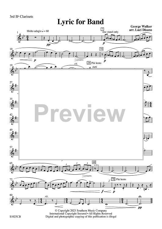 Digital Sheet Music for Lyric for Symphonic Band - Bb Clarinet 3 by George Walker, Luci Disano scored for Concert Band; id:503323