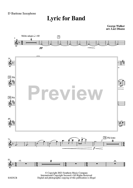 Digital Sheet Music for Lyric for Symphonic Band - Eb Baritone Sax by George Walker, Luci Disano scored for Concert Band; id:503332