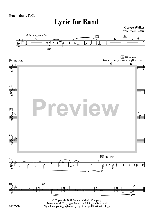 Digital Sheet Music for Lyric for Symphonic Band - Euphonium TC by George Walker, Luci Disano scored for Concert Band; id:503342