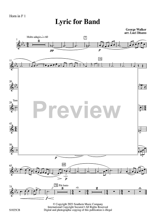 Digital Sheet Music for Lyric for Symphonic Band - F Horn 1 by George Walker, Luci Disano scored for Concert Band; id:503335