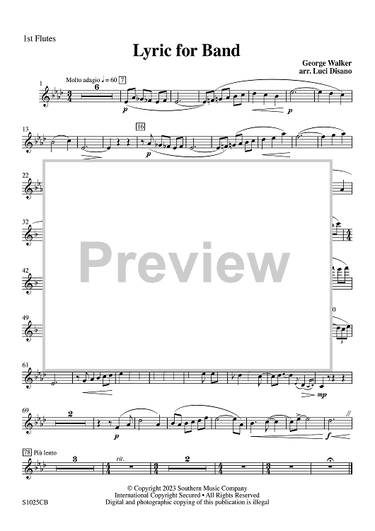 Digital Sheet Music for Lyric for Symphonic Band - Flute 1 by George Walker, Luci Disano scored for Concert Band; id:503316