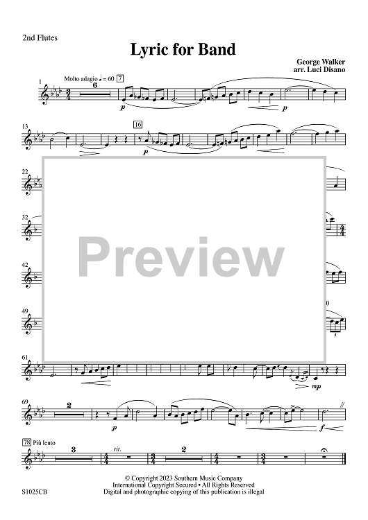 Digital Sheet Music for Lyric for Symphonic Band - Flute 2 by George Walker, Luci Disano scored for Concert Band; id:503317