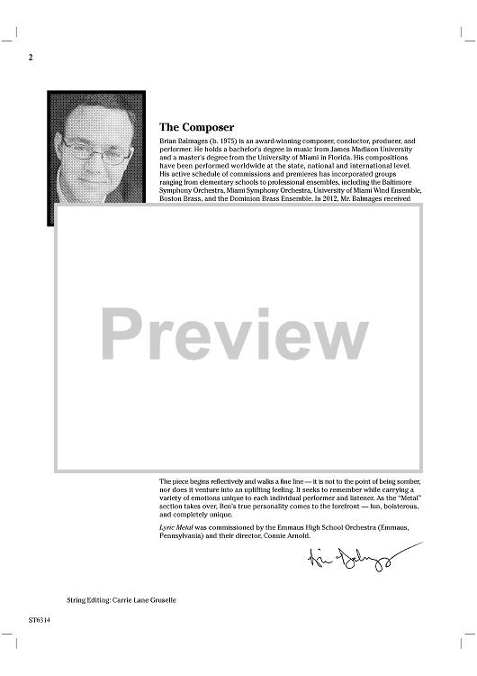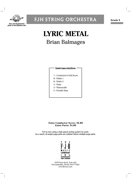 Digital Sheet Music for Lyric Metal - Score by Brian Balmages scored for String Orchestra; id:436986