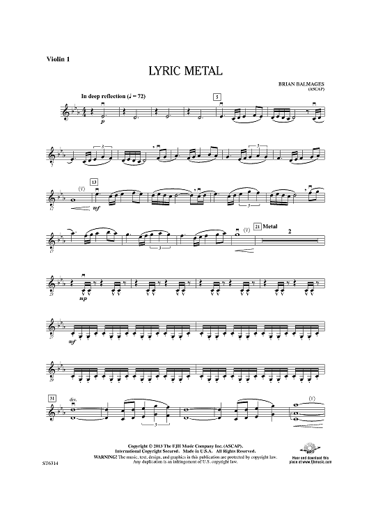 "Lyric Metal - Violin 1" Sheet Music by Brian Balmages