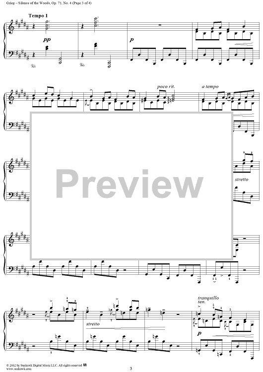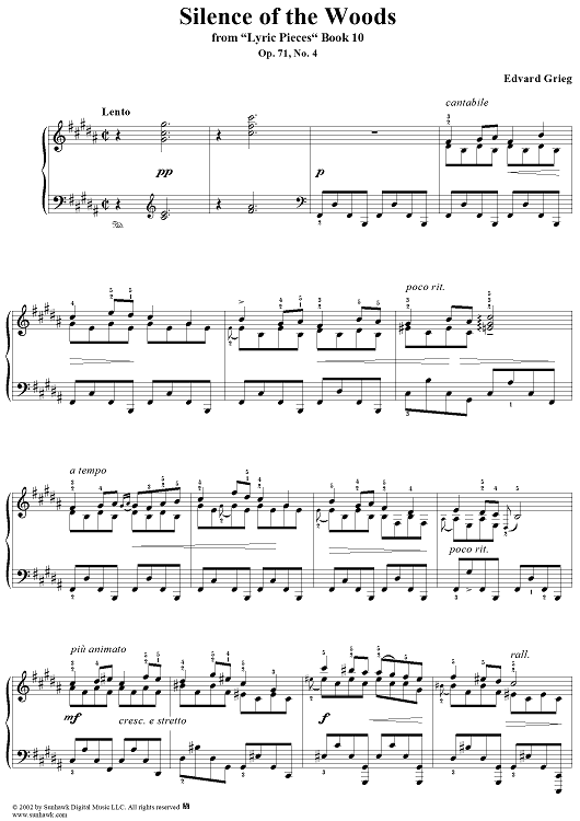 Digital Sheet Music for Lyric Pieces Book 10, op. 71, no. 4: Silence of the Woods by Edvard Grieg scored for Piano Solo; id:267920
