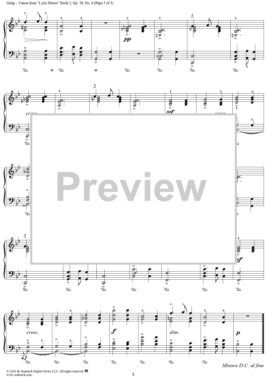 Digital Sheet Music for Lyric Pieces Book 2, op. 38, no. 8: Canon by Edvard Grieg scored for Piano Solo; id:267727