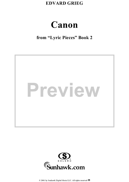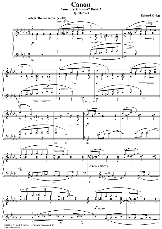 "Lyric Pieces Book 2, op. 38, no. 8: Canon" Sheet Music by Edvard Grieg