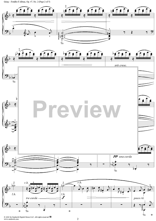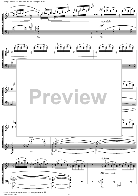 Digital Sheet Music for Lyric Pieces Book 4, op. 47, no. 2: Feuille d'Album (Albumleaf) by Edvard Grieg scored for Piano Solo; id:267736