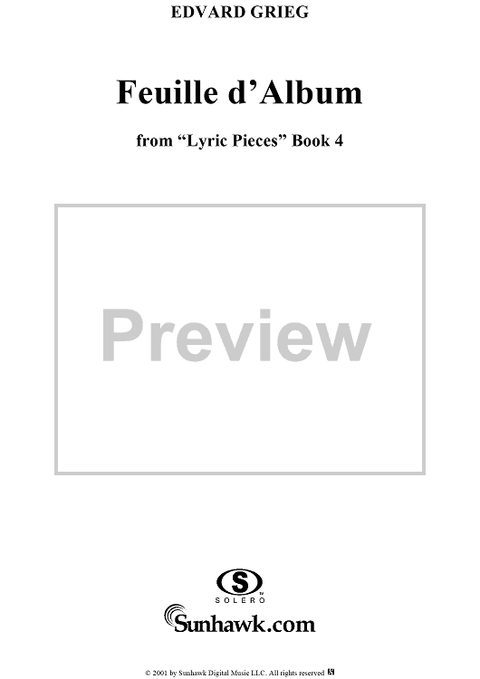 "Lyric Pieces Book 4, op. 47, no. 2: Feuille d'Album (Albumleaf)" Sheet Music by Edvard Grieg