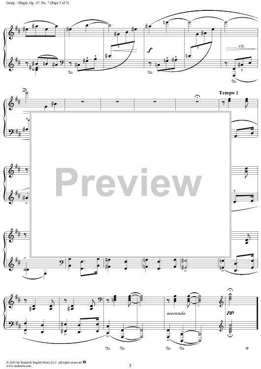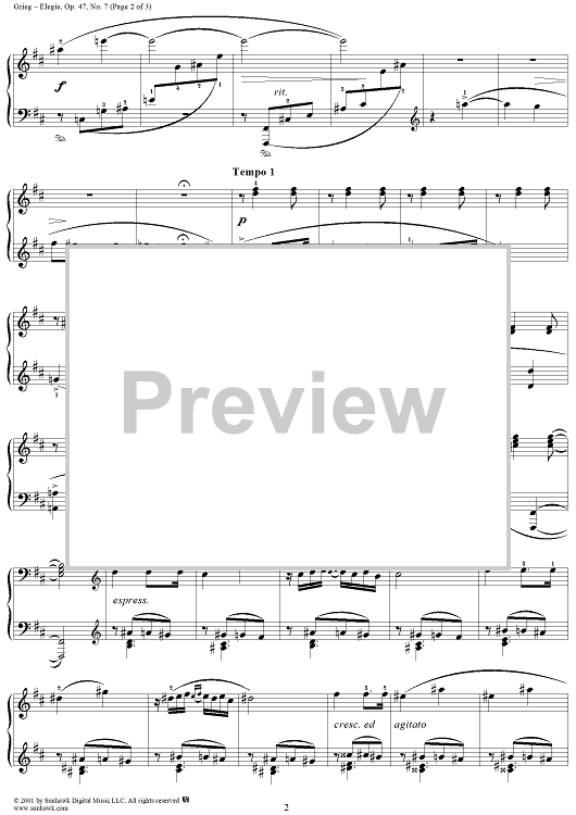 Digital Sheet Music for Lyric Pieces Book 4, op. 47, no. 7: Elegy by Edvard Grieg scored for Piano Solo; id:267707