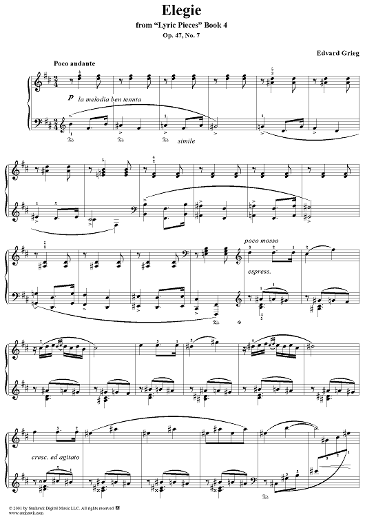 "Lyric Pieces Book 4, op. 47, no. 7: Elegy" Sheet Music by Edvard Grieg