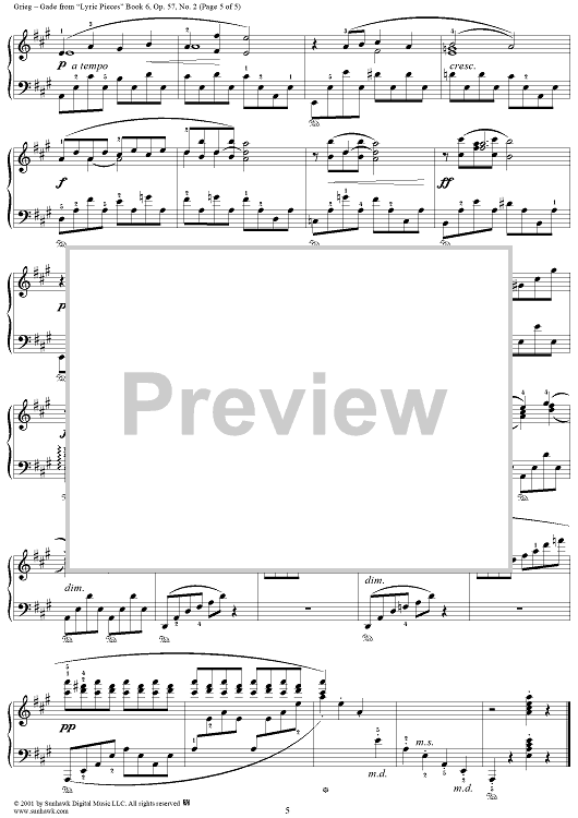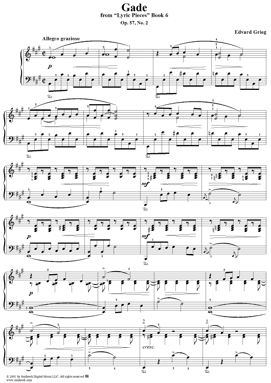 "Lyric Pieces Book 6, op. 57, no. 2: Gade" Sheet Music by Edvard Grieg