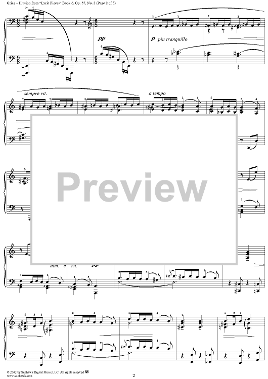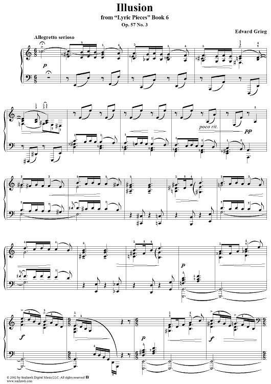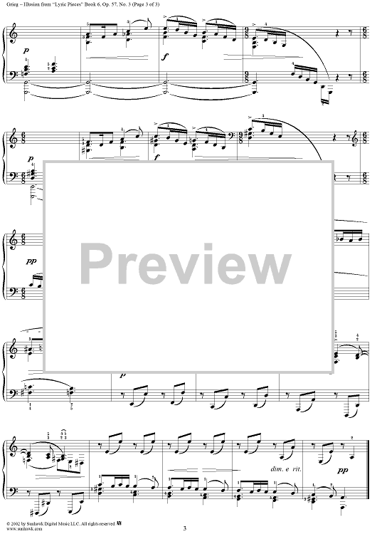 Digital Sheet Music for Lyric Pieces Book 6, op. 57, no. 3: Illusion by Edvard Grieg scored for Piano Solo; id:267940