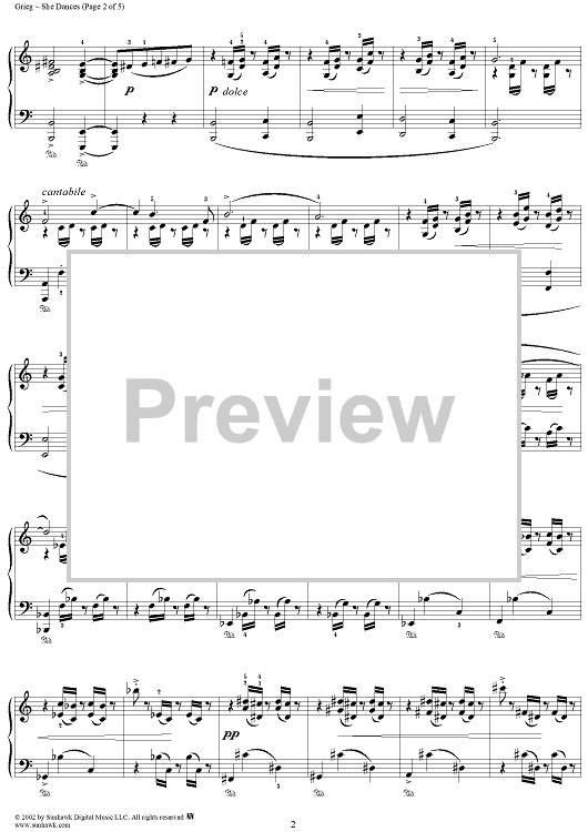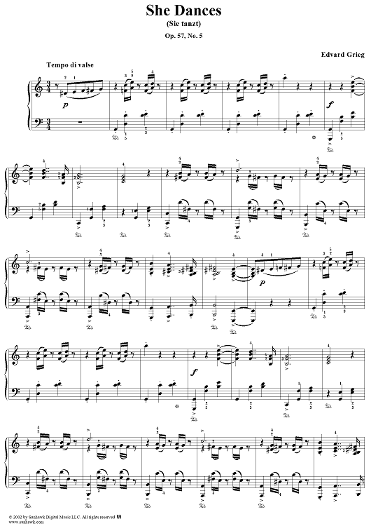 Digital Sheet Music for Lyric Pieces Book 6, op. 57, no. 5: She Dances by Edvard Grieg scored for Piano Solo; id:267941