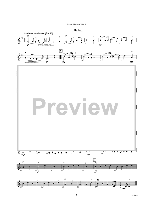"Lyric Pieces - Violin 1" Sheet Music by Edvard Grieg