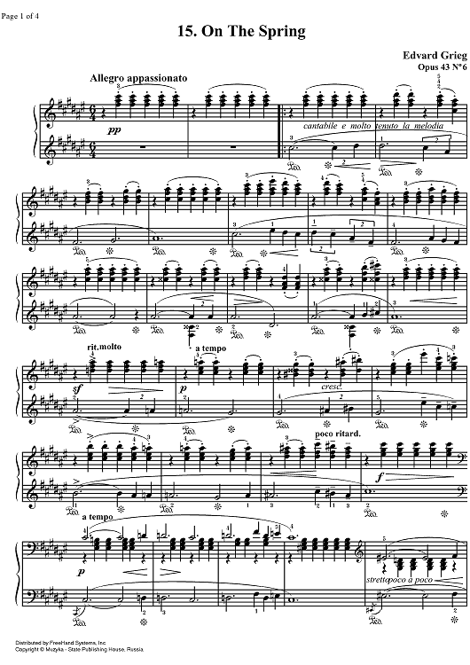 "Lyrical Pieces Op.43 No. 6 - An den Frühling (To the spring)" Sheet Music by Edvard Grieg
