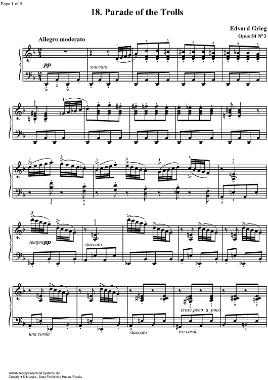 Digital Sheet Music for Lyrical Pieces Op.54 No. 3 - Troldtog (March of the Trolls) by , Edvard Grieg scored for Piano Solo; id:322637