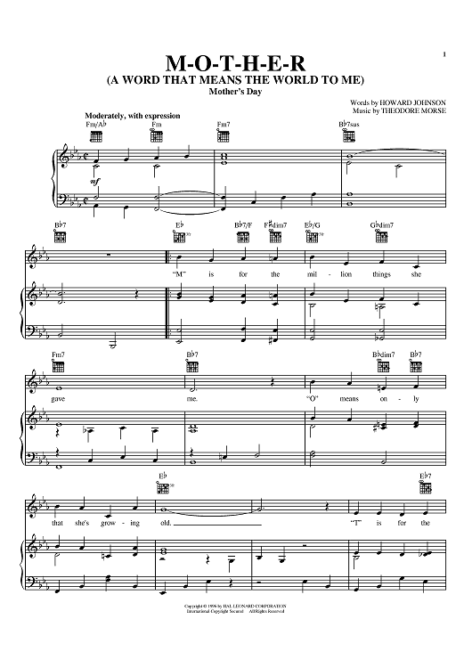 "M-O-T-H-E-R (A Word That Means The World To Me)" Sheet Music by Howard Johnson
