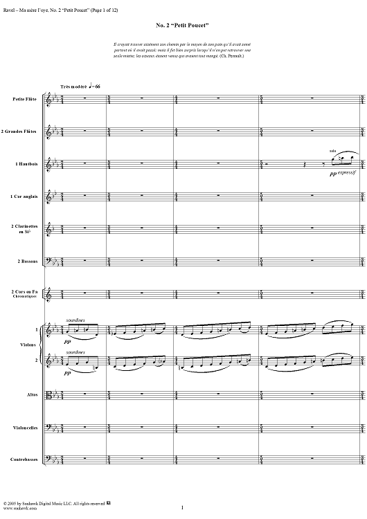 "Ma Mère L'Oye, No. 2: Petit Poucet - Full Score" Sheet Music by Maurice Ravel