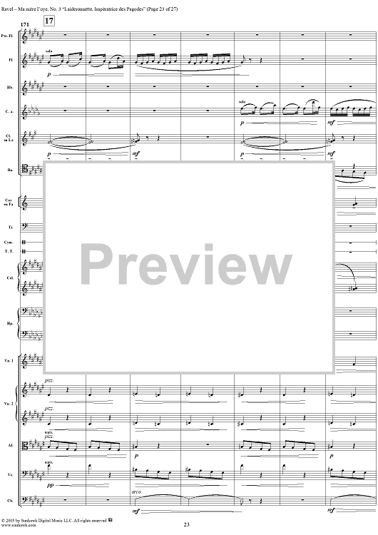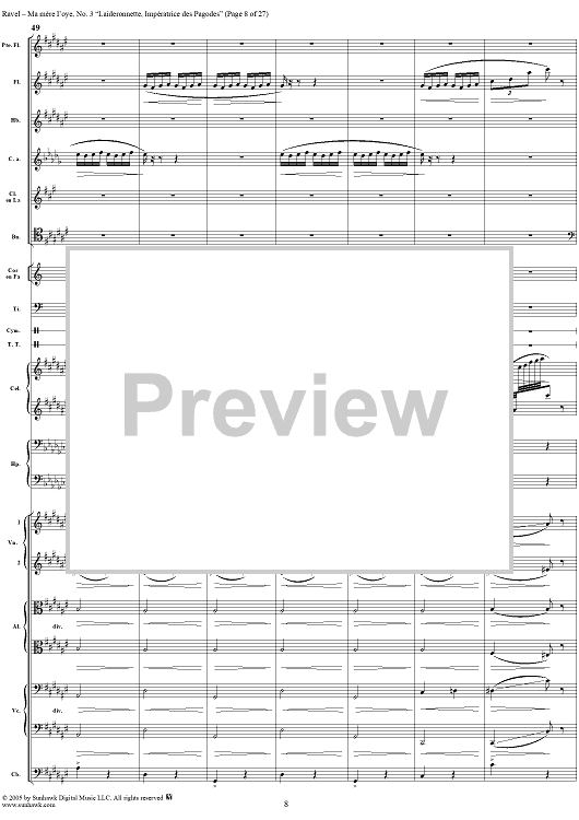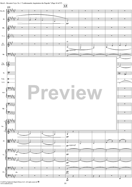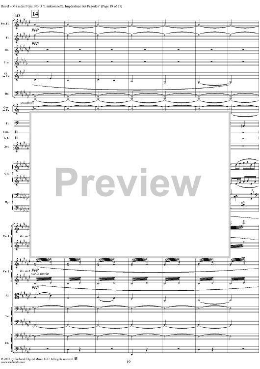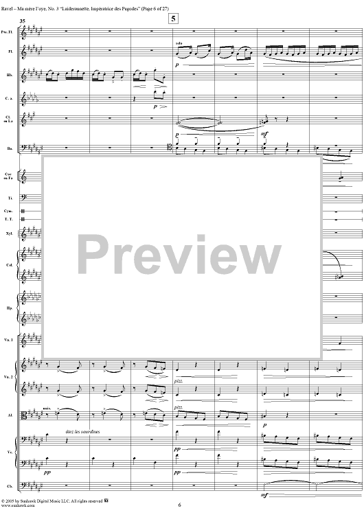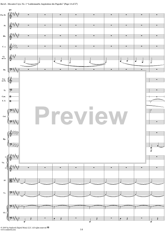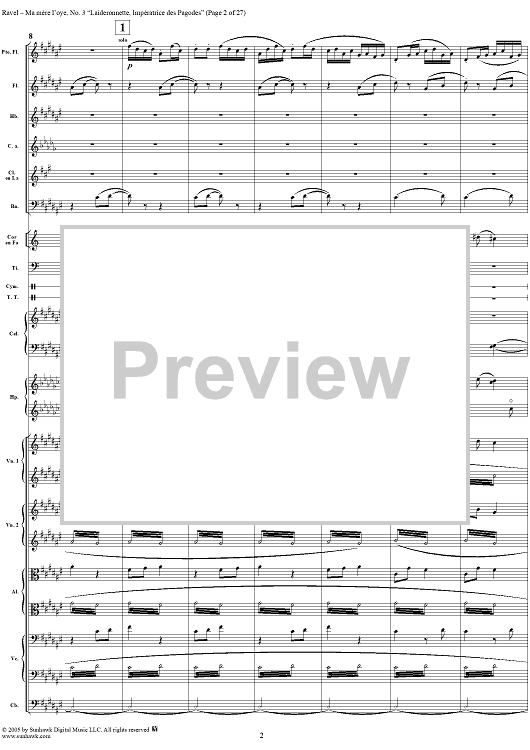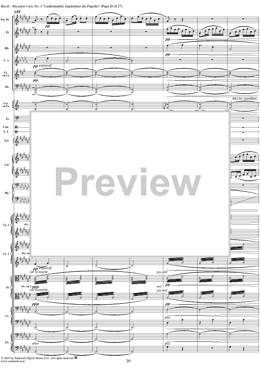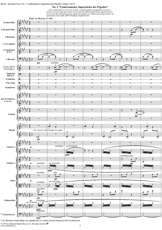 Digital Sheet Music for Ma Mère L'Oye, No. 3: Laideronnette, Impératrice des Pagodes - Full Score by Maurice Ravel scored for Orchestra; id:311340