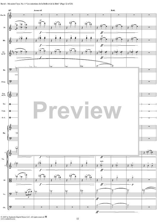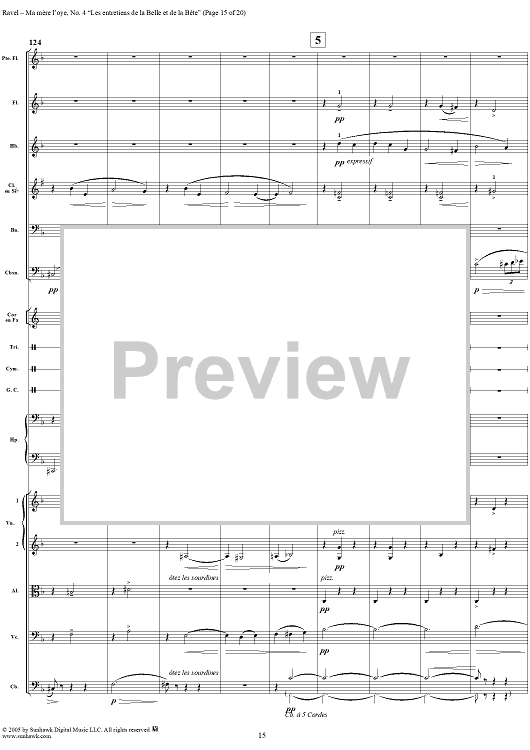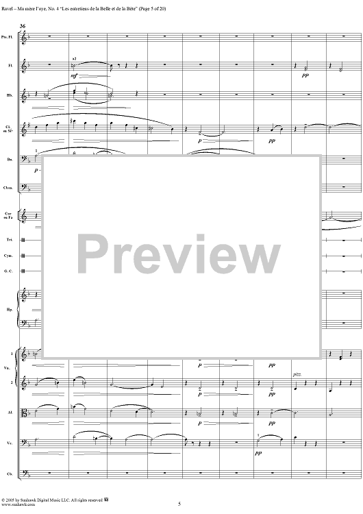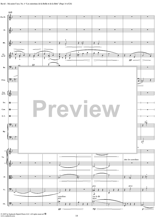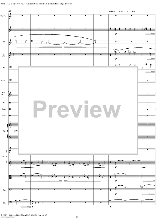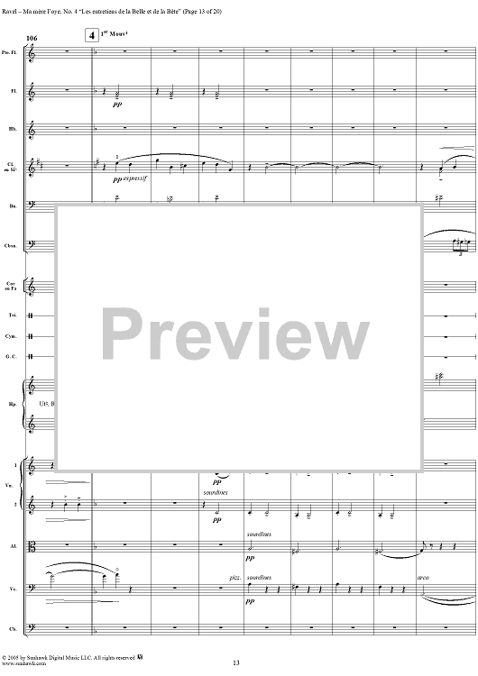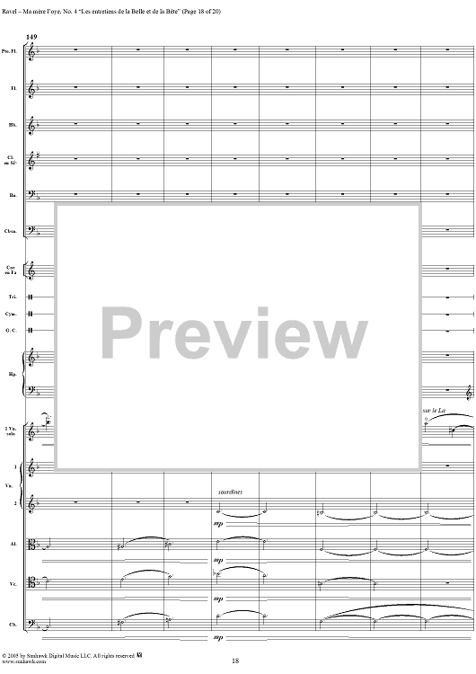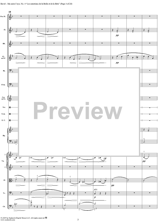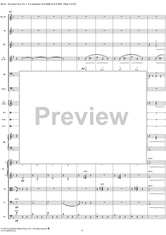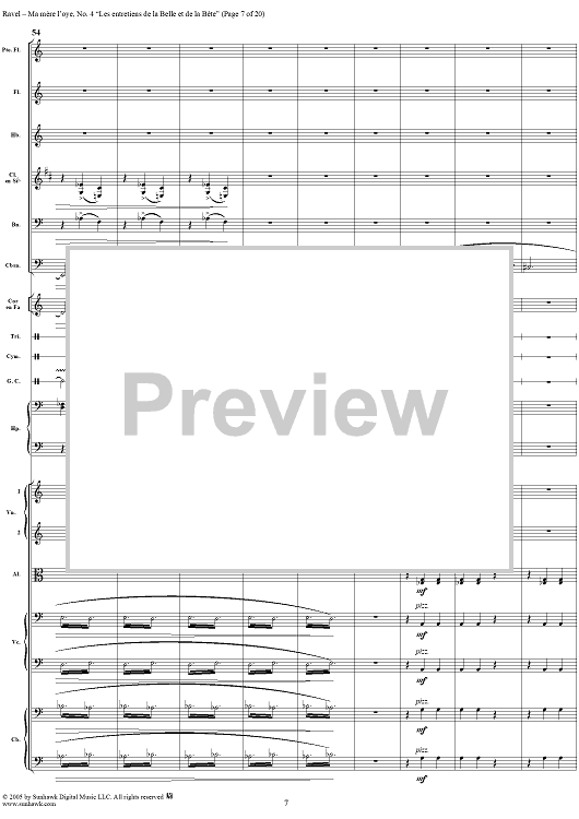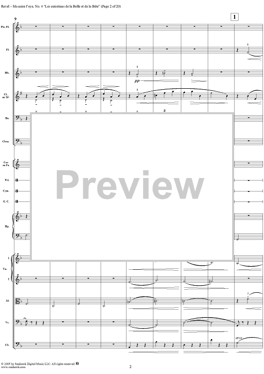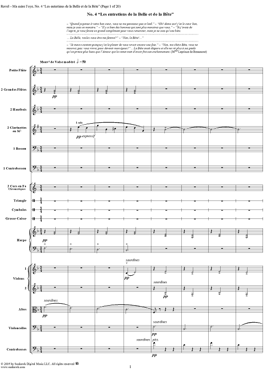 Digital Sheet Music for Ma Mère L'Oye, No. 4: Les entretiens de la Belle et de la Bête - Full Score by Maurice Ravel scored for Orchestra; id:311341