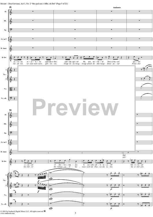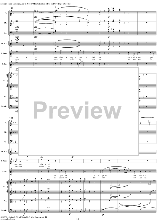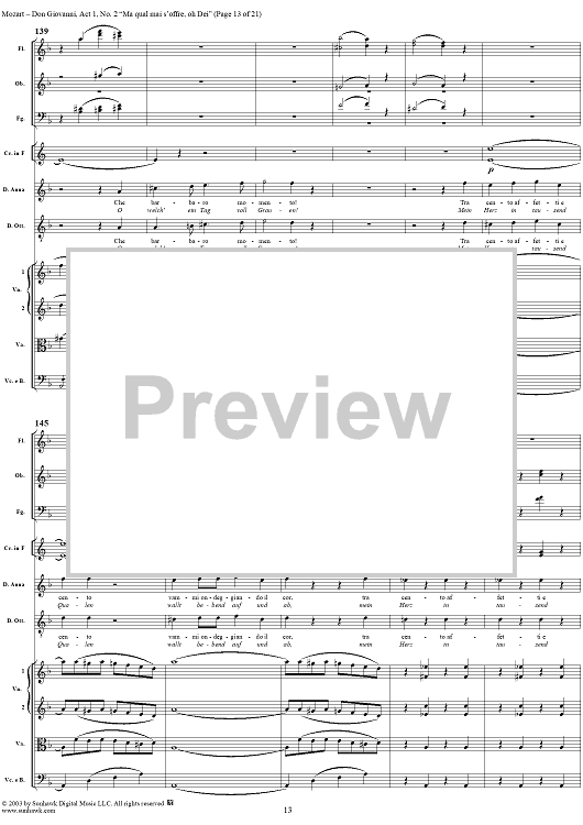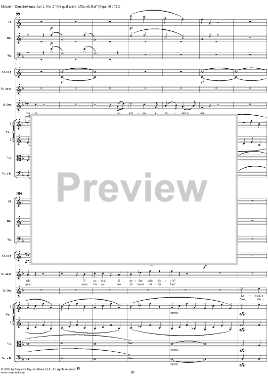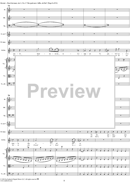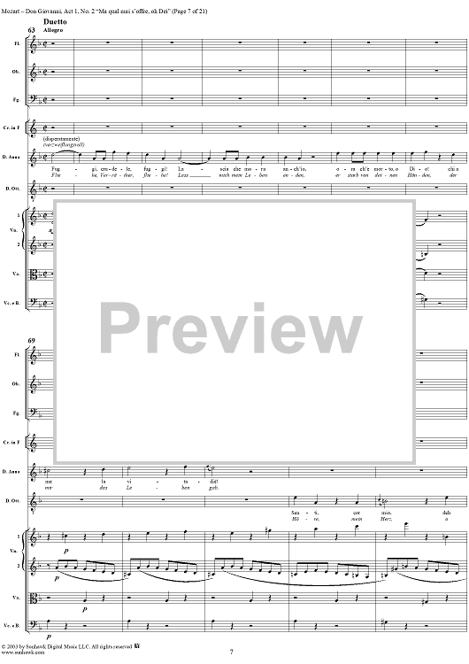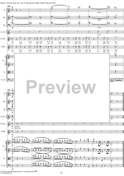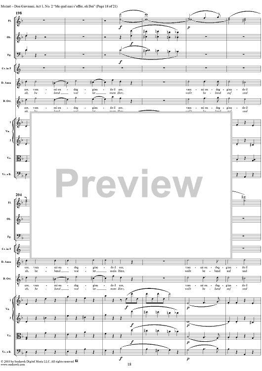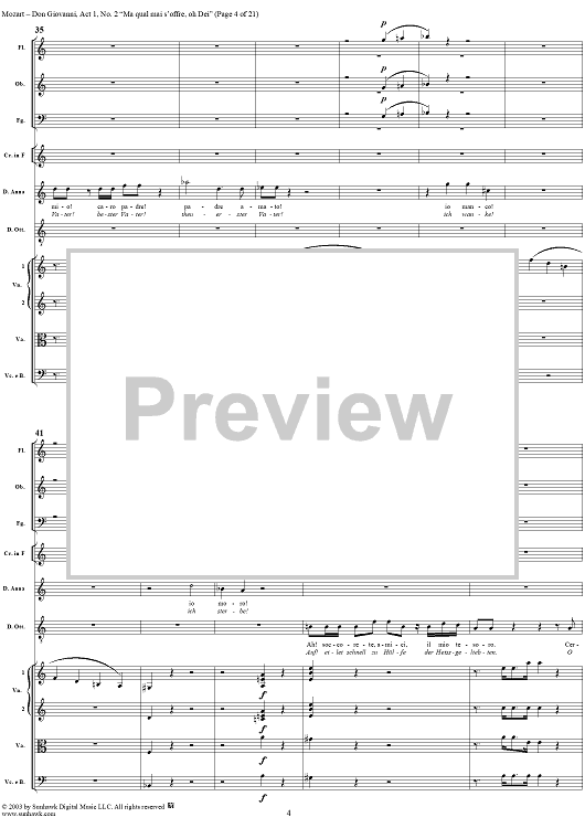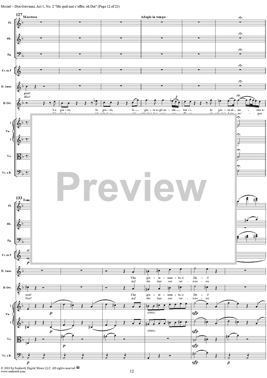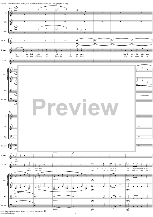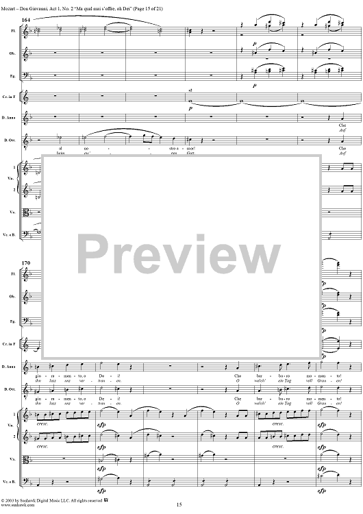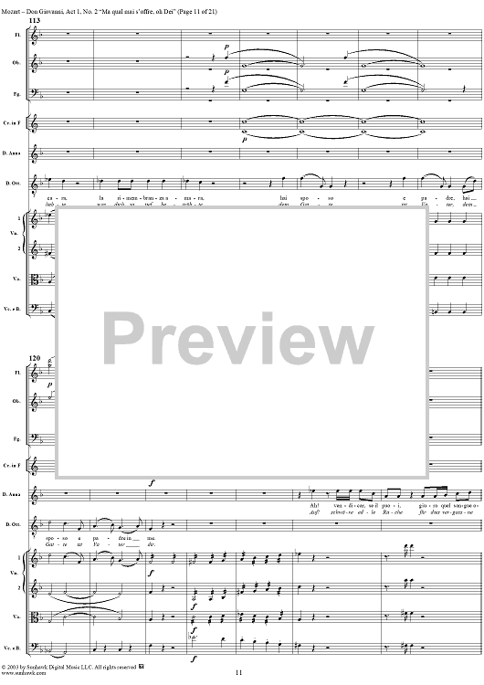 Digital Sheet Music for "Mà qual mai s'offre, oh Dei", No. 2 from "Don Giovanni", Act 1, K527 - Full Score by Wolfgang Amadeus Mozart scored for Voice and Orchestra; id:291898