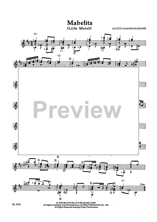 "Mabelita (Little Mabel)" Sheet Music by Agustin Barrios Mangore