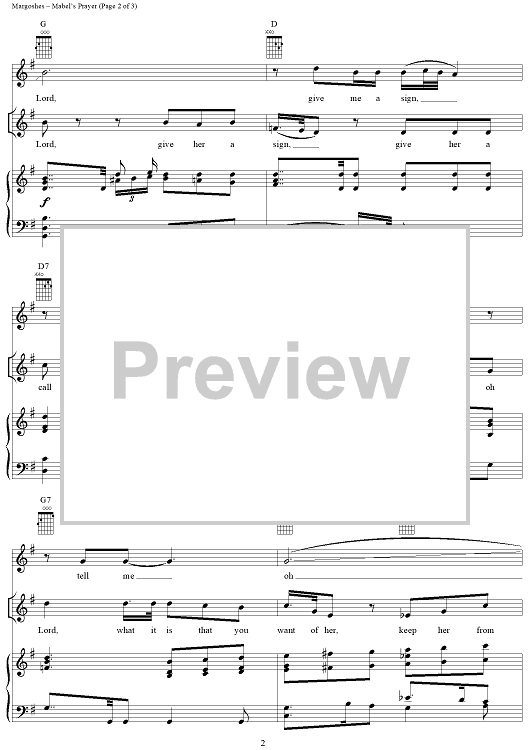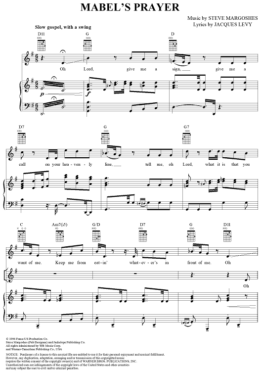 Digital Sheet Music for Mabel's Prayer by Steve Margoshes, Jacques Levy scored for Piano/Vocal/Chords; id:359469