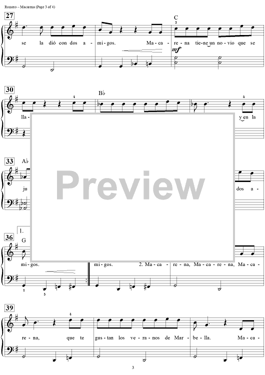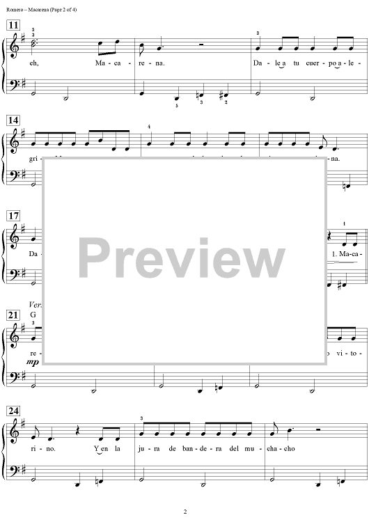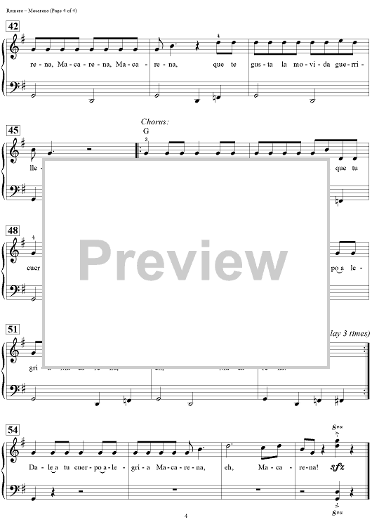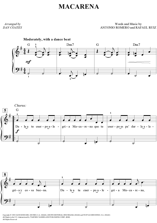 Digital Sheet Music for Macarena by Dan Coates, Antonio Romero, Rafael Ruiz scored for Easy Piano/Vocal/Chords; id:457294