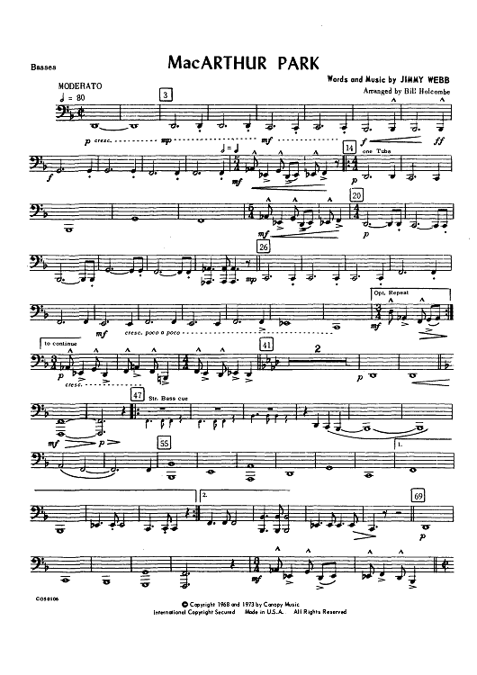 "MacArthur Park - Basses" Sheet Music by Jimmy Webb