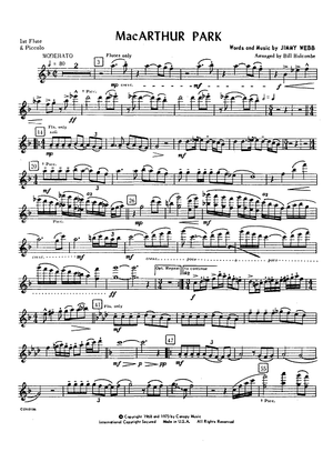 Digital Sheet Music for MacArthur Park - Flute 1 & Piccolo by , Jimmy Webb, Bill Holcombe scored for Concert Band; id:433011