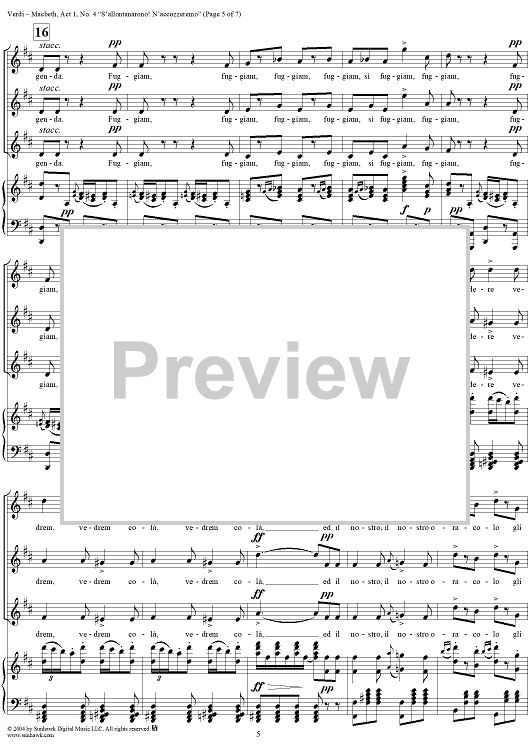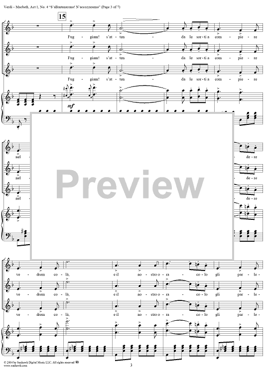 Digital Sheet Music for Macbeth, Act 1, No. 4, Choir. "S'allontanarono! N'accozzeremo" by Giuseppe Verdi scored for Vocal Score; id:304510