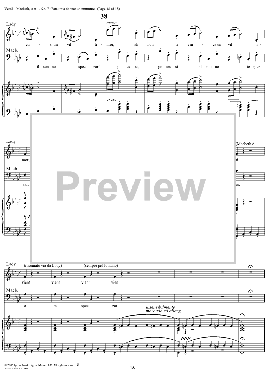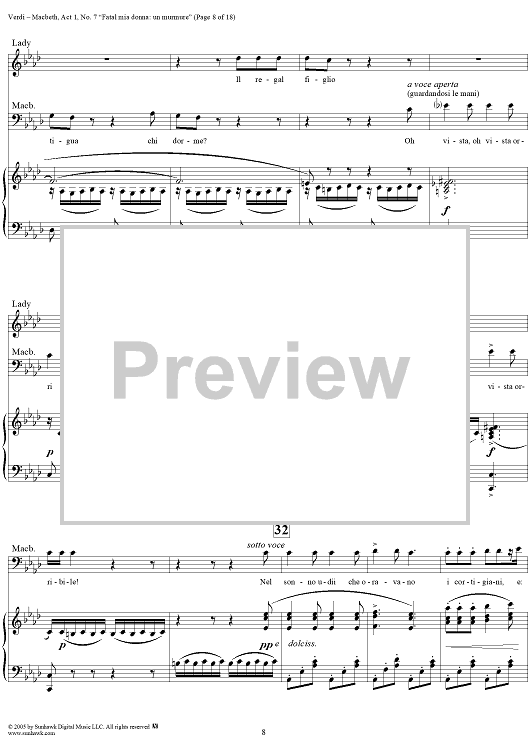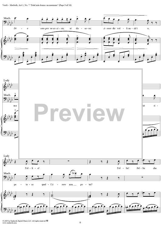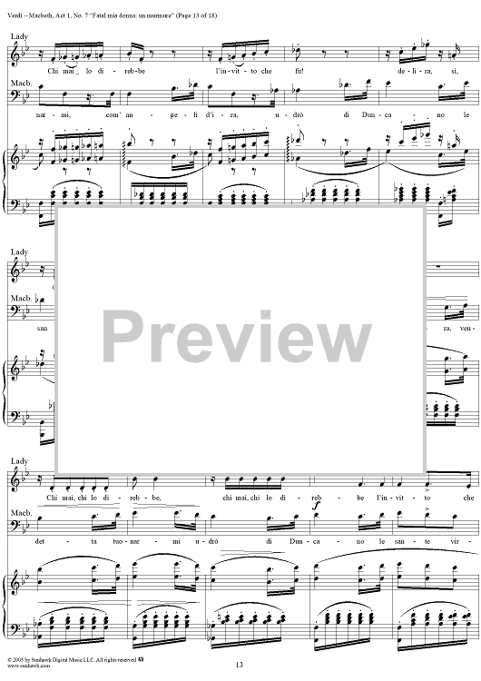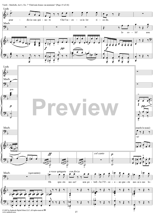 Digital Sheet Music for Macbeth, Act 1, No. 7, Scena and Duet. "Fatal mia donna: un murmure" by Giuseppe Verdi scored for Vocal Score; id:304513