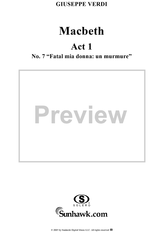 "Macbeth, Act 1, No. 7, Scena and Duet. "Fatal mia donna: un murmure"" Sheet Music by Giuseppe Verdi