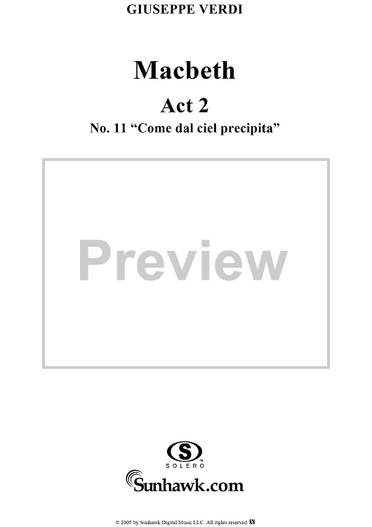 Digital Sheet Music for Macbeth, Act 2, No. 11, Scena. "Come dal ciel precipita" by Giuseppe Verdi scored for Vocal Score; id:304517