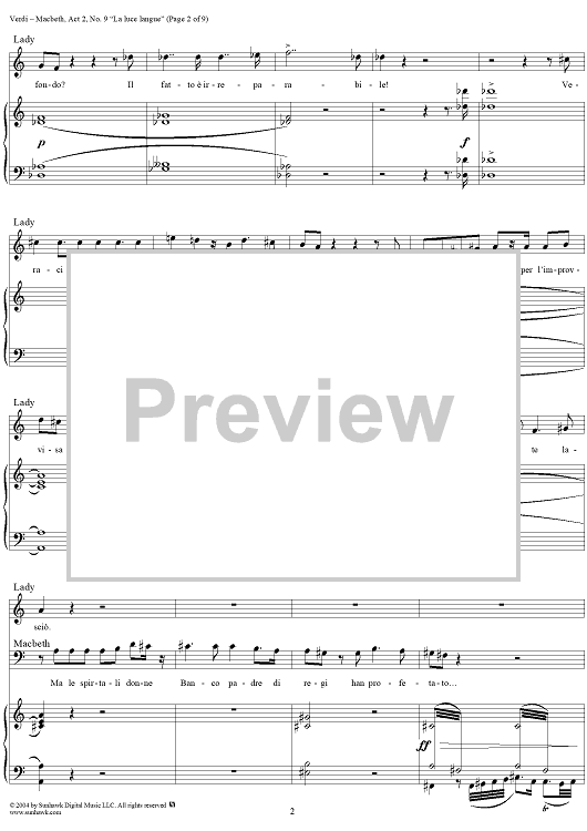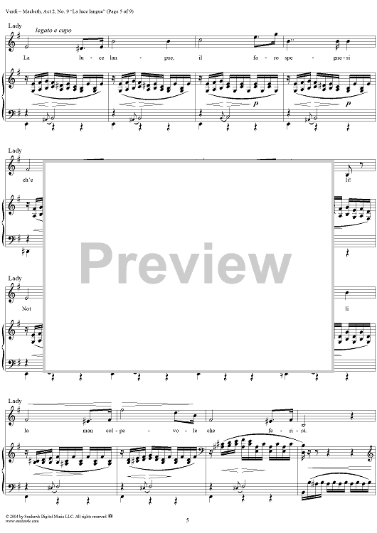 "Macbeth, Act 2, No. 9, Scena and Aria. "La luce langue"" Sheet Music by Giuseppe Verdi