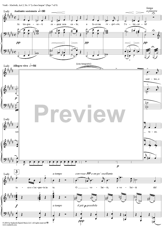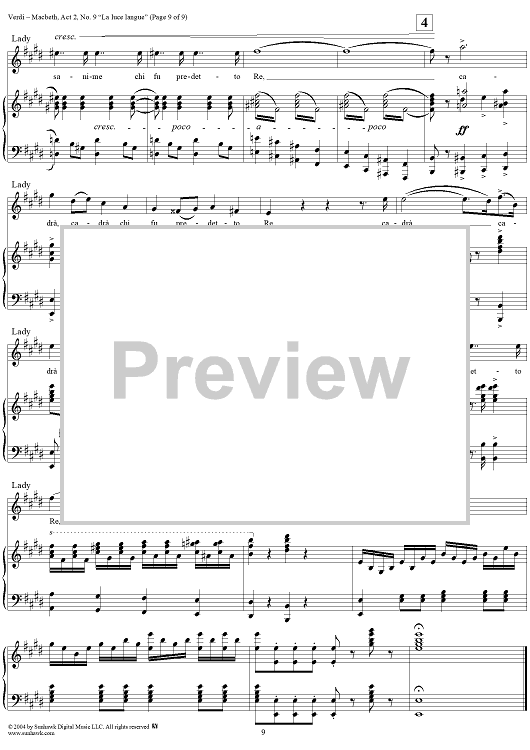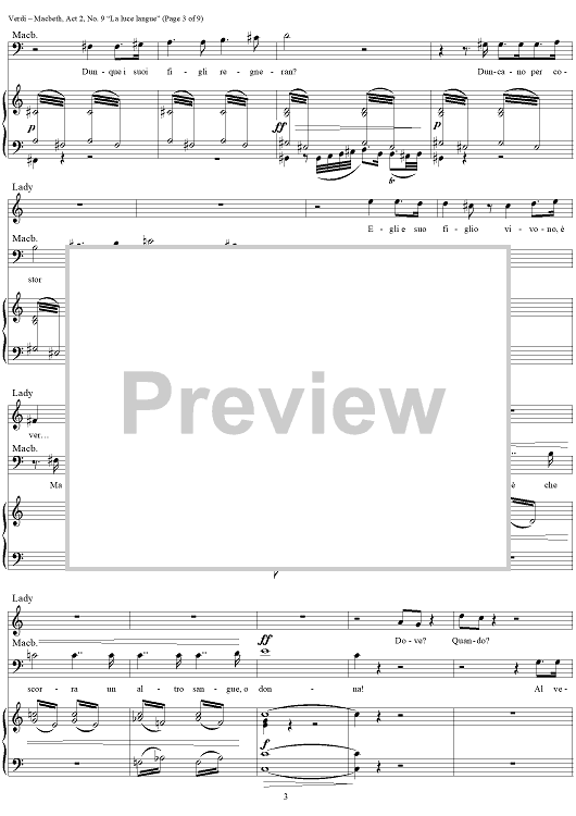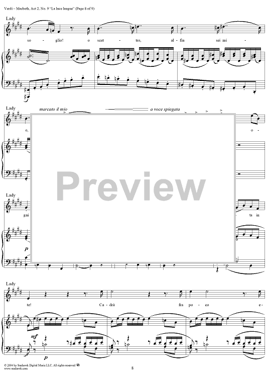 Digital Sheet Music for Macbeth, Act 2, No. 9, Scena and Aria. "La luce langue" by Giuseppe Verdi scored for Vocal Score; id:304515